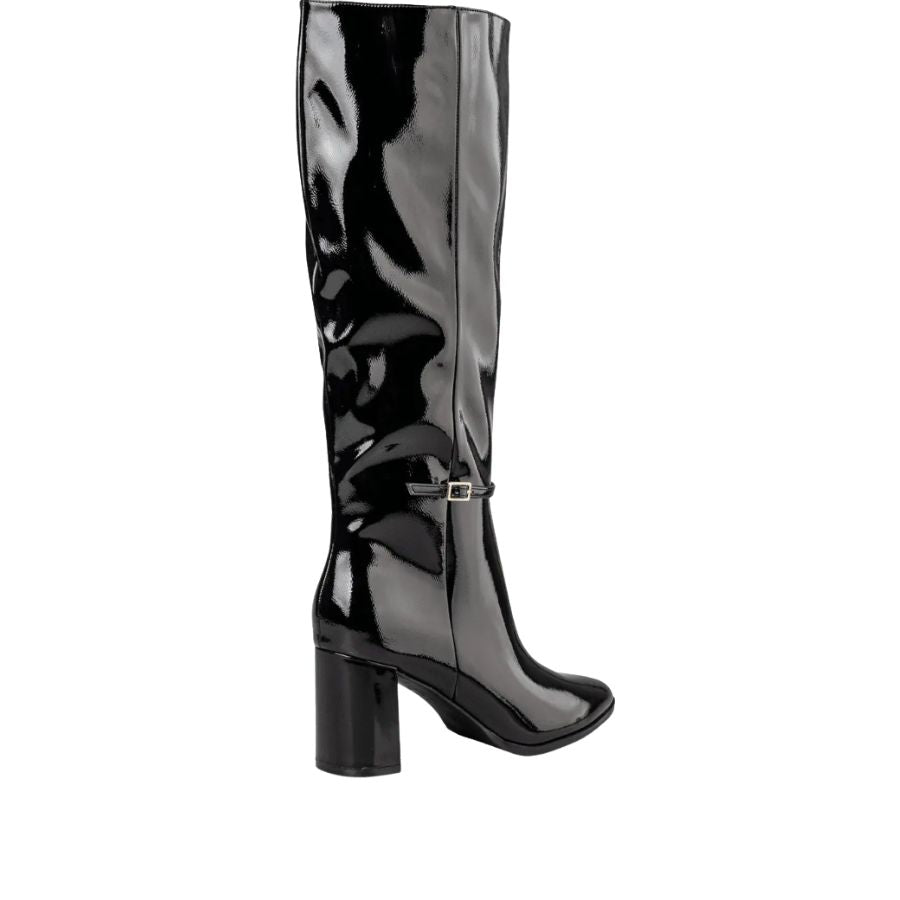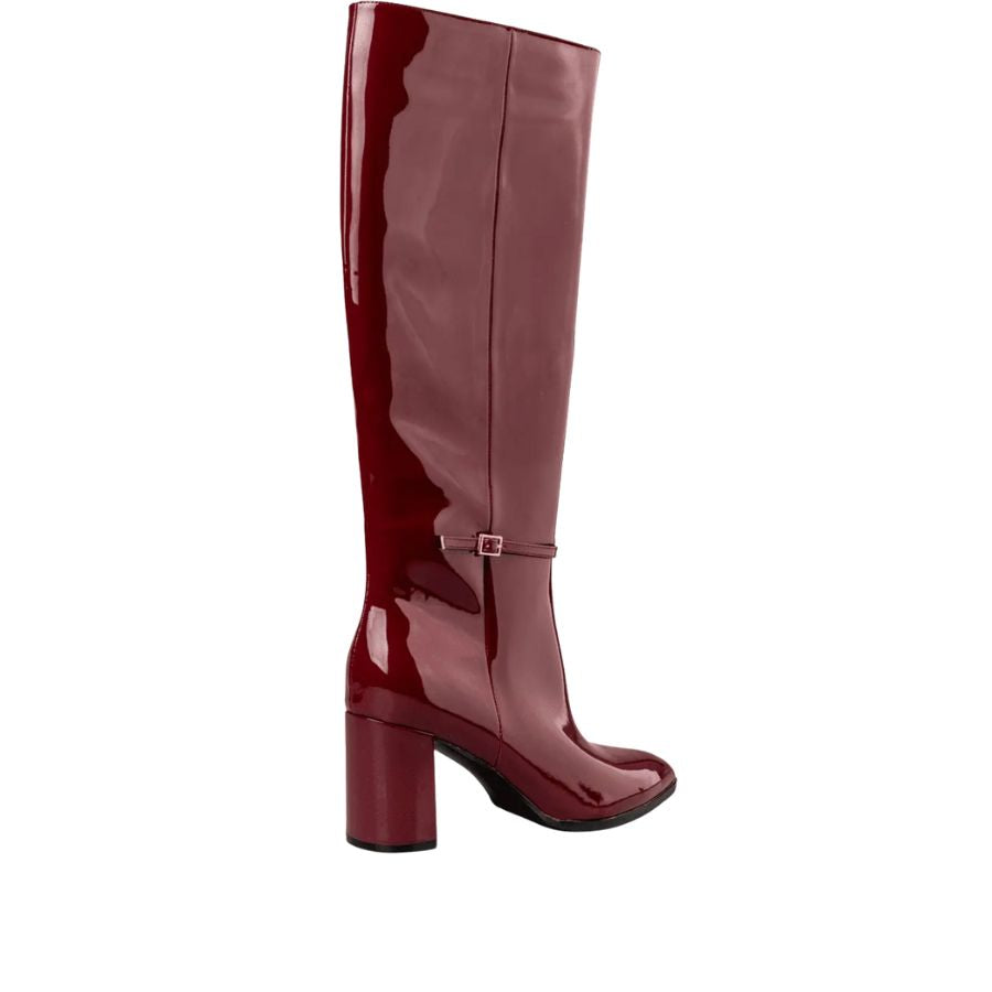 The Envie Patent Knee-High Boots in rich bordeaux redefine statement style with a glossy, high-shine finish. Made from premium patent synthetic leather, these boots feature a square toe, mid-high block heel, and a sleek fitted shaft for a bold yet elegant silhouette.