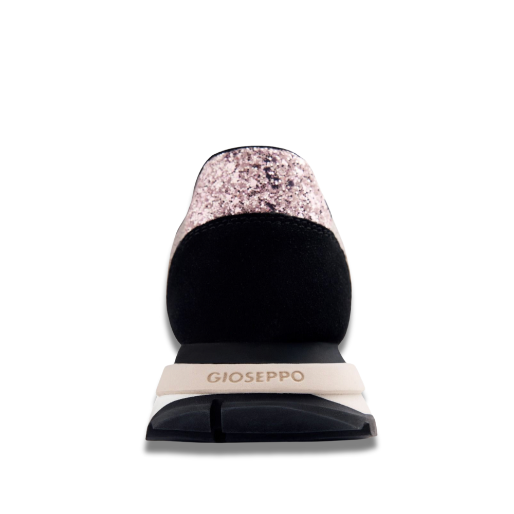 Suede leather sneakers with metallic accents, mesh panels, and an internal wedge. They feature a padded insole and a heel stabilizer. Internal wedge height: 3 cm.