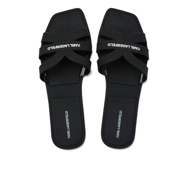 These jelly slippers feature a chic wide strap design adorned with playful cut-out details. The KARL LAGERFELD logo graces the footbed for a laidback yet iconic look.